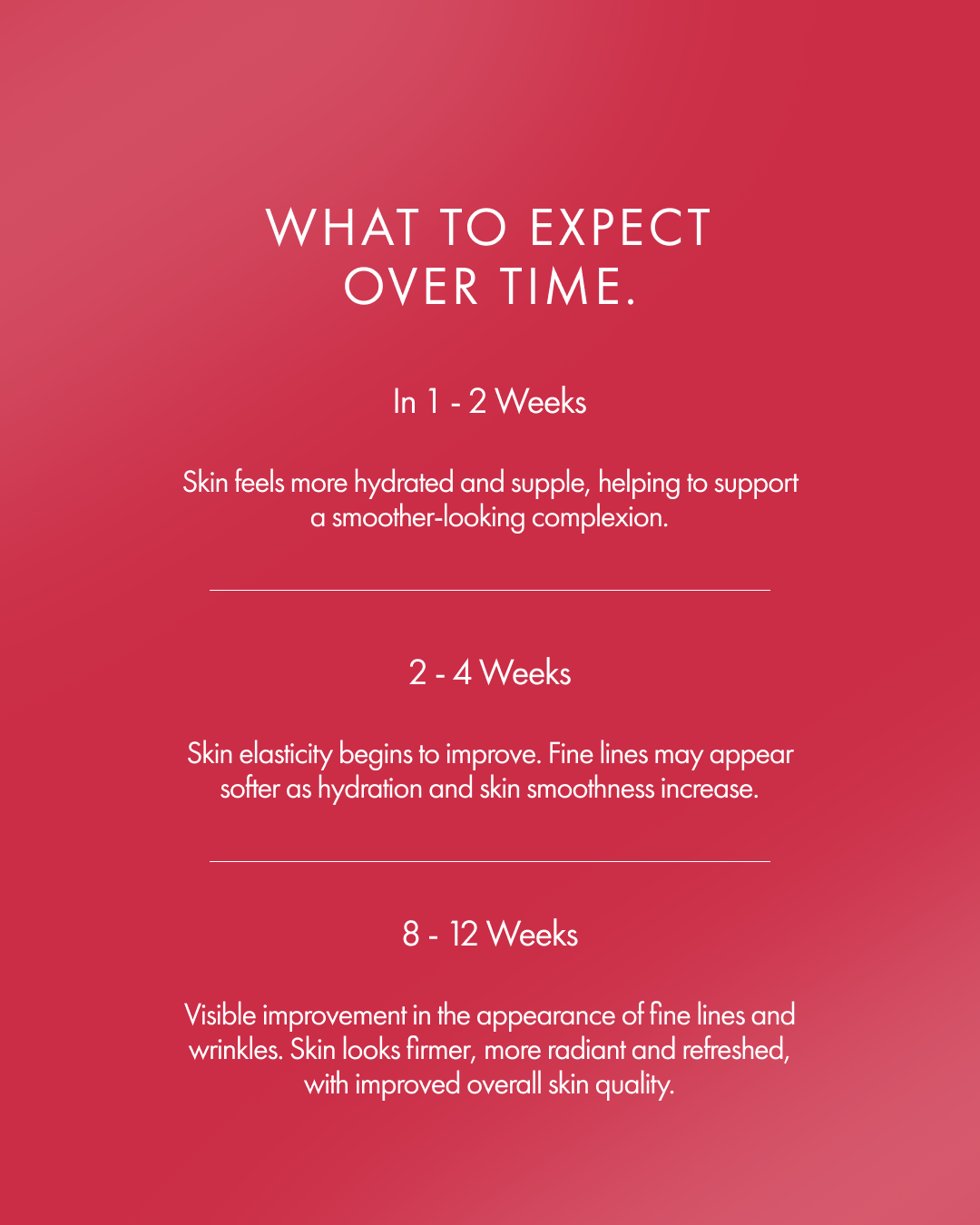 Visible improvements in skin appearance in as little as 28 days.