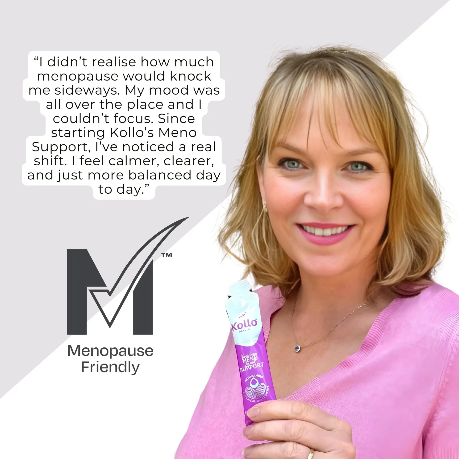 Kollo Health proudly launches Meno Support, a meticulously formulated liquid supplement for perimenopause and menopause. This blackcurrant and apple-flavoured liquid blend offers vital nutritional support with key ingredients like Ashwagandha, Lions's Mane Extract, Hyaluronic Acid, Red Clover, Sage Leaf, Vitamin D3, Vitamin B6, Folic Acid, Magnesium, Dandelion Root, Chamomile, and Siberian Ginseng. Approved with the MTick, ensuring menopause-friendly quality.