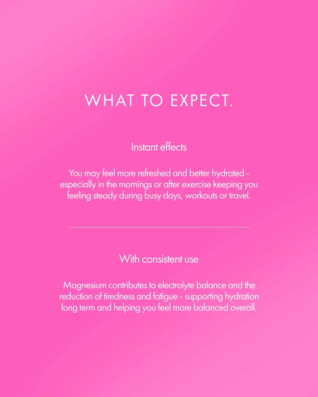 Every ingredient is intentionally dosed to support fluid balance at a cellular level, helping maintain normal muscle function, nervous system function and electrolyte balance. Magnesium also contributes to the reduction of tiredness and fatigue - because proper hydration isn’t just about drinking more water, it’s about the right mineral balance.